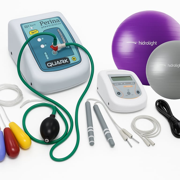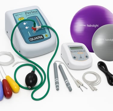Fonte: Imagem gerada por IA em que apresenta equipamentos utilizados em fisioterapia pélvica
